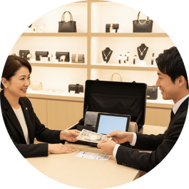 すぐにでも現金に替えたいというお客様は、お近くの店舗まで品物をお持ちください。取引成立後、現金でお支払い致します。買取金額にご納得できない場合は、お売りいただかなくても大丈夫です。