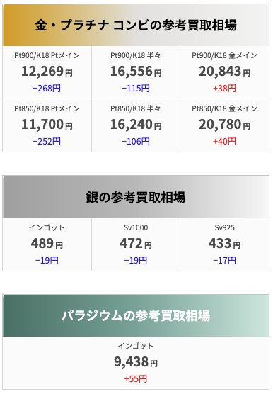 本日の金相はこちらのページよりご確認下さい。